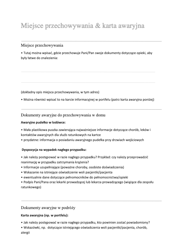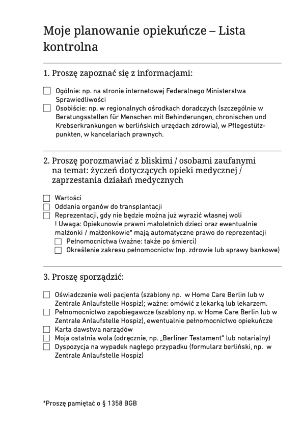 Dzięki Twojej pomocy możemy regularnie aktualizować folder i jeszcze lepiej dostosowywać go do potrzeb pacjentów, krewnych, pracowników służby zdrowia i doradców. Folder jest rozprowadzany wśród pacjentów w urzędach zdrowia, szpitalach i gabinetach lekarskich i jest używany głównie w Berlinie, ale także w innych krajach związkowych.