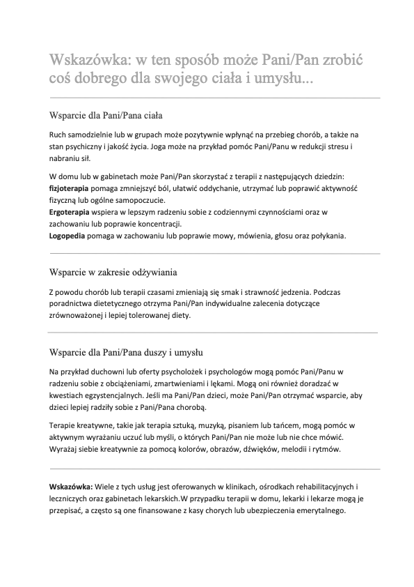 Jeśli czegoś Państwo nie rozumieją w swoich dokumentach, proszę koniecznie zapytać lekarza lub lekarkę o wyjaśnienie. Proszę pozwolić sobie na przykład na wyjaśnienie terminów.