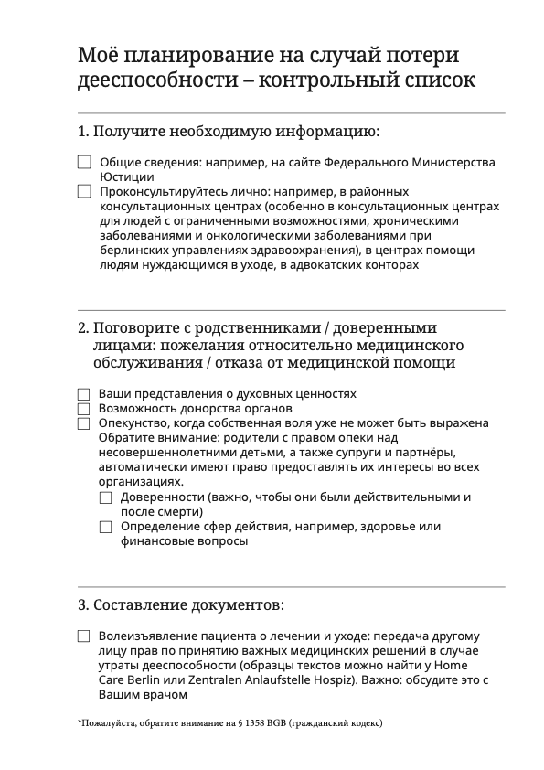 С Вашей помощью мы сможем регулярно обновлять папку и еще лучше адаптировать ее к потребностям пациентов, родственников, а также тех, кто их лечит и консультирует. Папка будет распространяется, например как среди пациентов, органов здравоохранения, больниц, разных медицинских учреждений и используется в основном в Берлине, а также в других федеральных землях.
