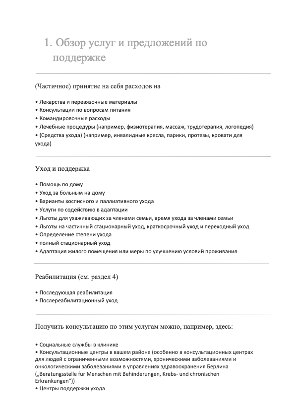 В течение всего курса лечения Вы также будете регулярно получать документацию о Вашей терапии. Пожалуйста сохраните эти документы для дальнейшего лечения. К ним также принадлежит план приёма лекарств.