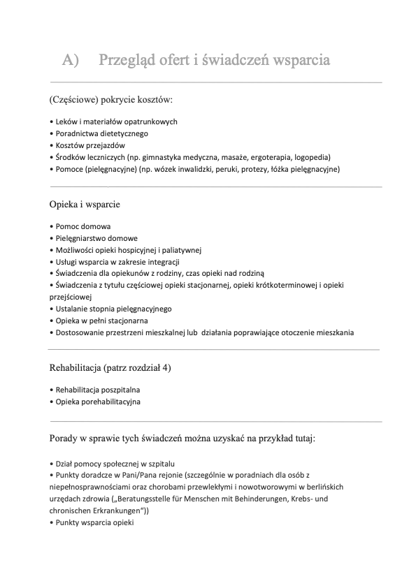 Dzięki Twojej pomocy możemy regularnie aktualizować folder i jeszcze lepiej dostosowywać go do potrzeb pacjentów, krewnych, pracowników służby zdrowia i doradców. Folder jest rozprowadzany wśród pacjentów w urzędach zdrowia, szpitalach i gabinetach lekarskich i jest używany głównie w Berlinie, ale także w innych krajach związkowych.