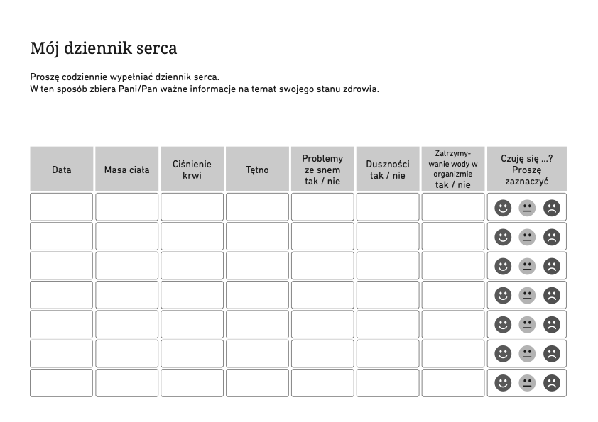 Państwa obecne ogólne dolegliwości zdrowotne oraz zmierzone wartości mają kluczowe znaczenie dla dalszego leczenia. Dlatego ważne jest, aby notować i przechowywać aktualne informacje dotyczące Państwa zdrowia, choroby i leczenia.